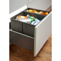Sortownik do segregacji śmieci Pullboy Vario 9XL - 600 mm, to bardzo praktyczny zestaw dwóch pojemników wstawianych bezpośrednio do szuflady. Sortownik na śmieci przeznaczony jest do szuflady o zewnętrznej szerokości 60 cm i głębokości 50 cm. Minimalna wysokość wewnętrzna jaka jest potrzebna to 300 mm. Zestaw pasuje do szuflady montowanej pod zlewozmywak.