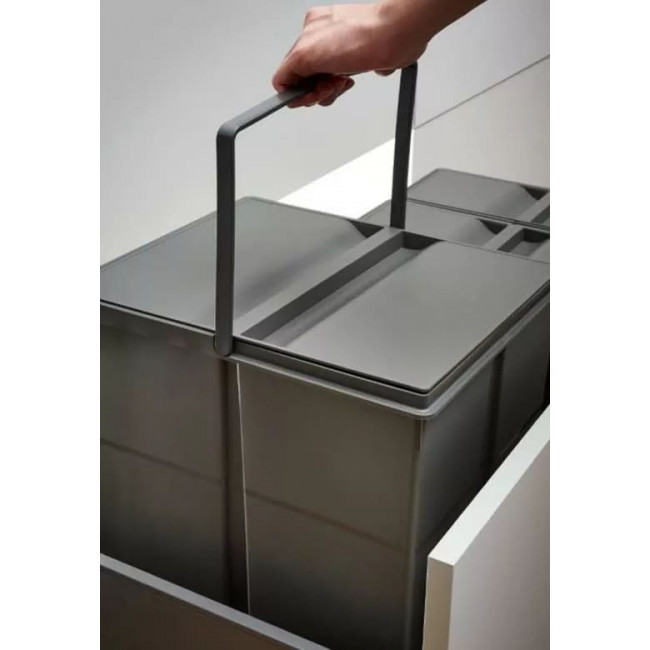 W komplecie Pullboy Vario 9XL znajdują się 1 x pojemnik 26 litrów i 2 x pojemnik 11 litrów, 3 x plastikowe pokrywki, 1x plastikowa wytłoczka. Zestaw w kolorze antracytowym.