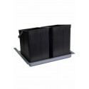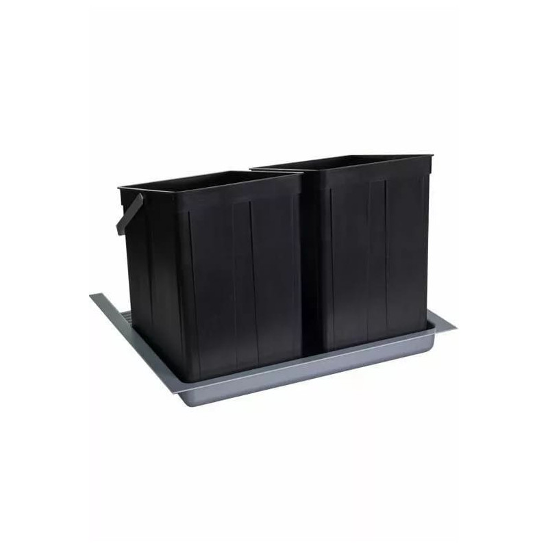 Basic Plus – zestaw pojemników 600/ 2x22 l w kolorze antracytowym z plastikową podstawką w kolorze szarym, z wymiarowaną do dna szuflad Antaro Blum, która usztywnia wstawione w niej pojemniki. Pojemniki pasują do szuflady z szerokości frontu 600 mm. Minimalna wysokość wewnętrzna jaka jest potrzebna to tylko około 360 mm (przestrzeń mierzona od dna szuflady do wysokości pojemnika). Kosze są dostosowane do szafki lub szuflady montowanej pod zlewozmywak.