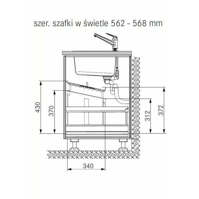 Wszystkie elementy dekoracyjne wraz szafką widoczne na zdjęciach aranżacyjnych są pokazane tylko na potrzeby prezentacji sortownika i jako całkowity zestaw nie stanowią oferty sprzedażowej. Szafkę z szufladą należy wykonać w własnym zakresie.
