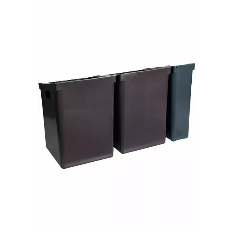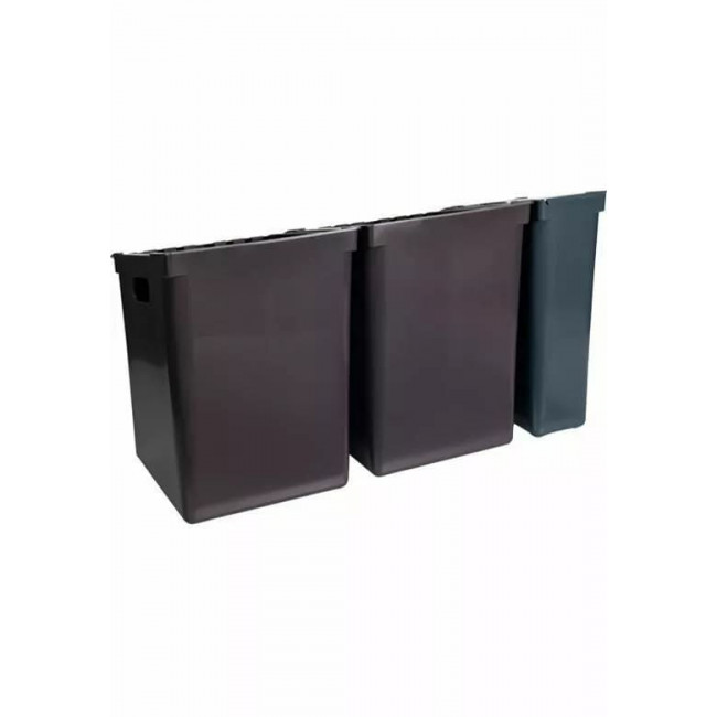 W zestawie są trzy pojemniki. Wszystkie trzy kosze mają skośny kształt, z przodu szuflady są wyższe, a tyłem delikatnie się obniżają, zostały celowo tak zaprojektowane, aby ominąć syfon i aby mieściły się w szafce ze zlewozmywakiem.