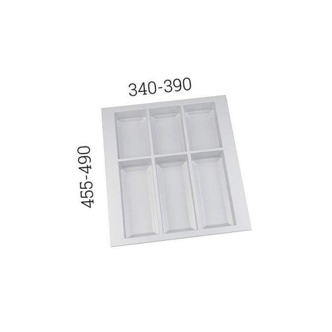Przy podanej szerokości do dyspozycji mamy 6 komór. Trzy mniejsze komory posłużą do przechowywania łyżeczek, widelczyków czy innych drobnych akcesoriów np.: zaparzacza do herbaty, trzy większe komory świetnie zorganizują przestrzeń na łyżki stołowe, noże i widelce.