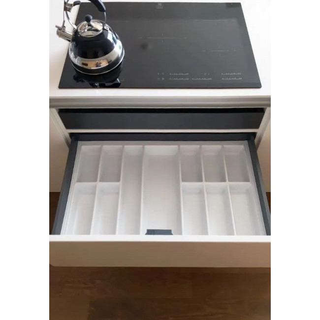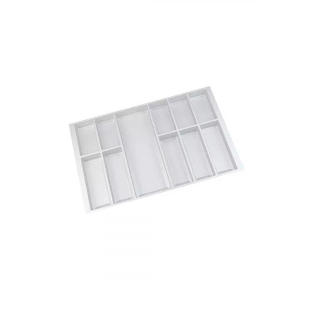 Wkład Classico na sztućce i akcesoria kuchenne w kolorze białym. Wkład pasuje do szuflad o szerokości frontu 800 mm i głębokości prowadnicy 500 mm.