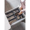 Przy podanej szerokości do dyspozycji mamy 6 komór. Trzy mniejsze komory posłużą do przechowywania łyżeczek, widelczyków czy innych drobnych akcesoriów np.: zaparzacza do herbaty, trzy większe komory świetnie zorganizują przestrzeń na łyżki stołowe, noże i widelce.